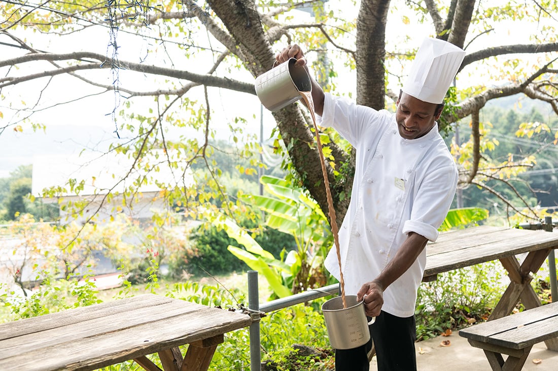 淹れ方も独特。高い位置からカップに注ぐことを何度か繰り返すことで空気が含まれ、口当たりがよくまろやかな味になるそう。