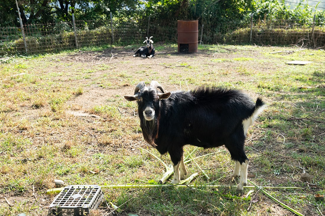 敷地内には、草刈りスタッフとしてヤギも飼育されています。